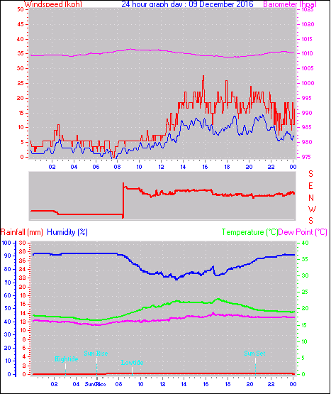 Maximum windspeed = 16.7 km/h on day 03 at time 21:16