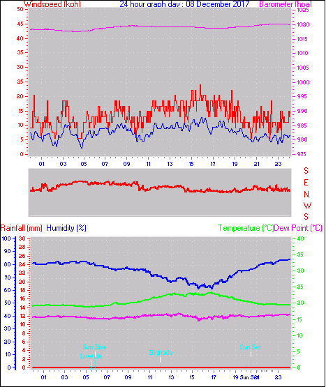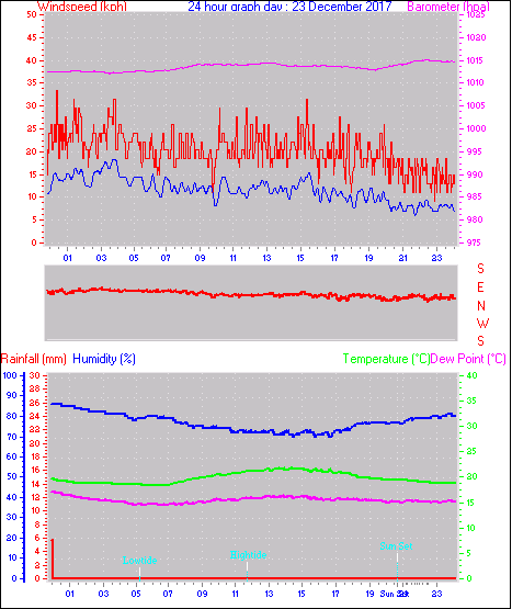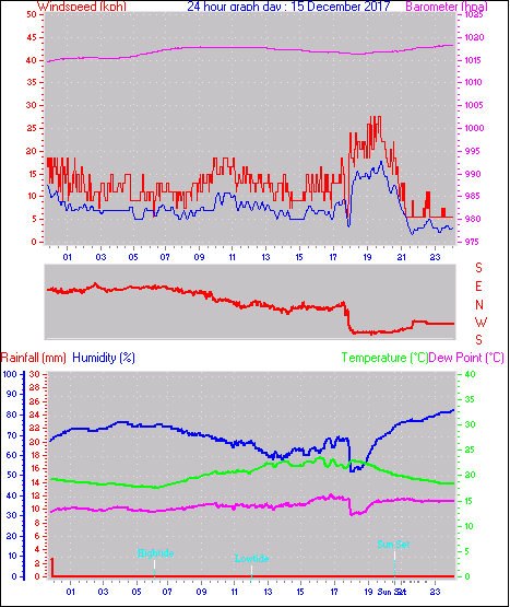 Maximum windspeed = 16.7 km/h on day 31 at time 17:24