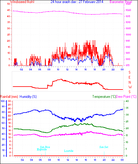 Minimum dewpoint = 14.0°C on day 27 at time 7:24