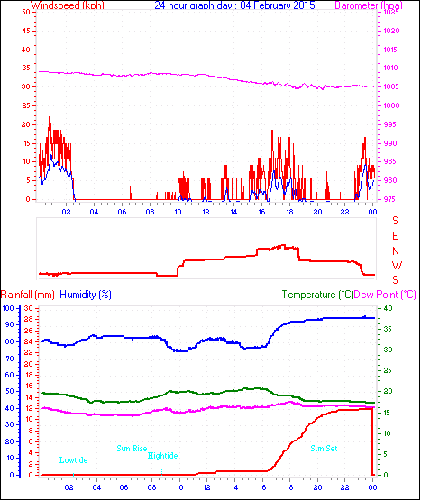 Minimum dewpoint = 14.3°C on day 04 at time 6:36