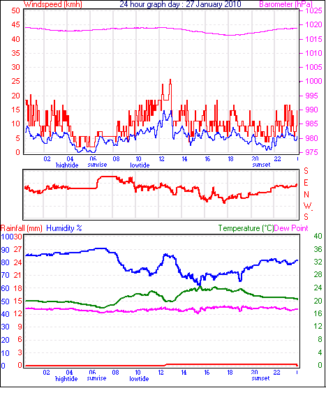 Maximum windspeed = 27.8 km/h on day 01 at time 19:04