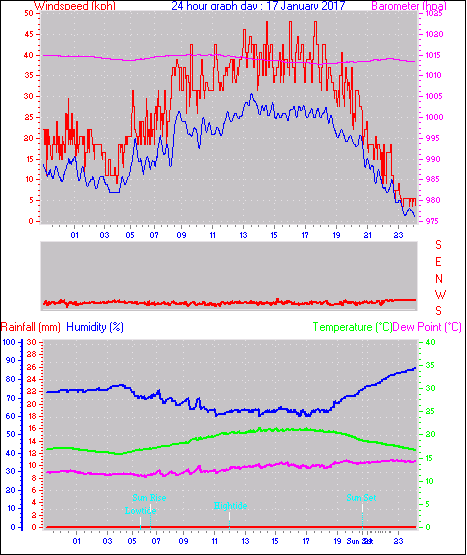 Maximum windspeed = 24.1 km/h on day 30 at time 15:12