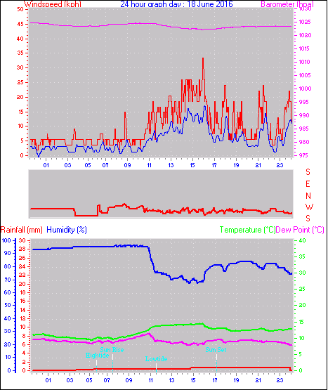 Maximum windspeed = 18.5 km/h on day 30 at time 23:53