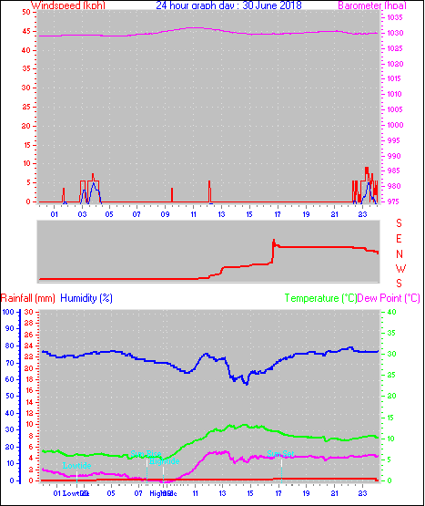 Minimum dewpoint = 0.0°C on day 30 at time 8:45