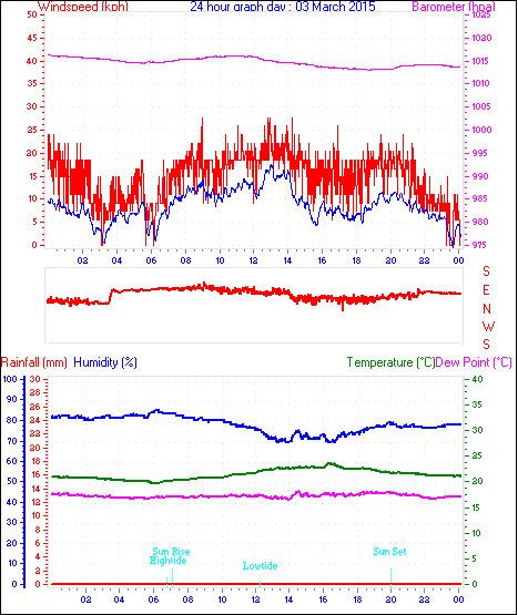 Minimum dewpoint = 14.8°C on day 01 at time 7:24