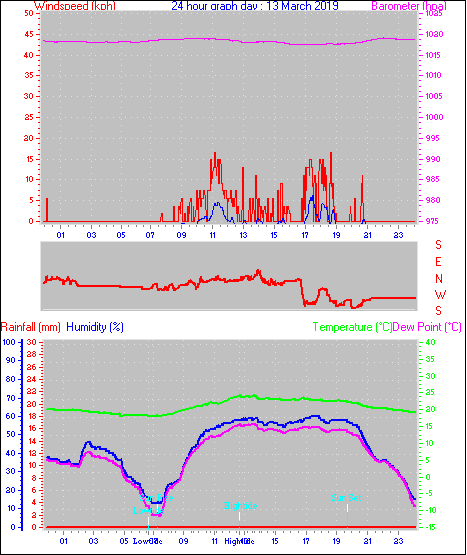 Maximum dewpoint = 13.0°C on day 01 at time 17:07