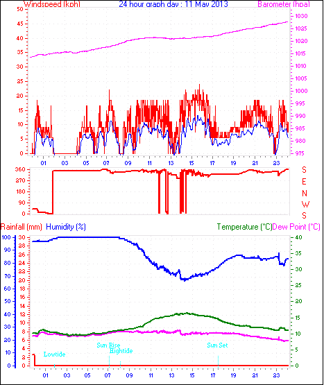 Minimum dewpoint = 16.3°C on day 03 at time 5:49