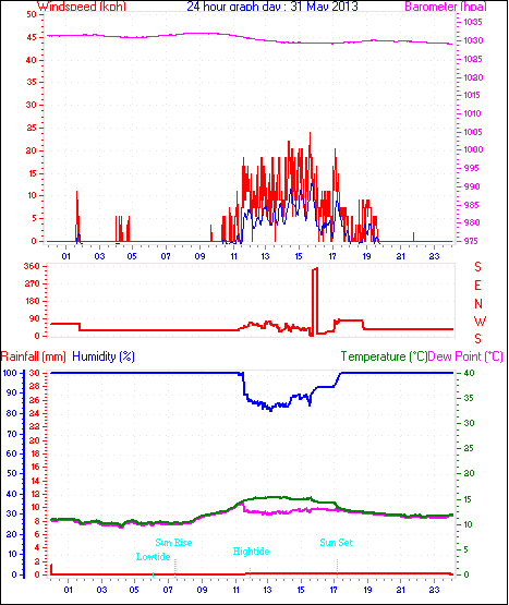Maximum windspeed = 16.7 km/h on day 31 at time 15:37