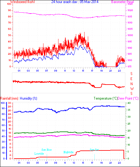 Maximum windspeed = 14.8 km/h on day 04 at time 23:29