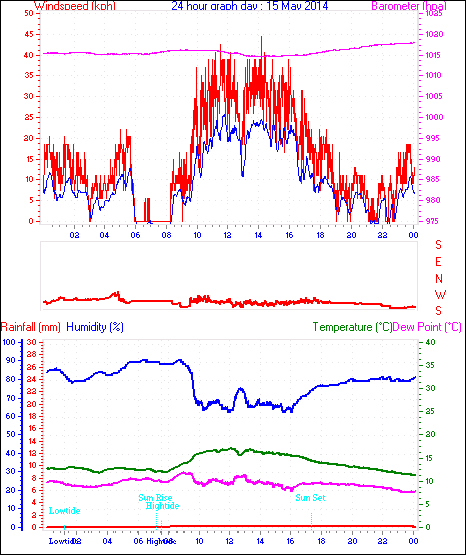 Maximum windspeed = 24.1 km/h on day 30 at time 14:07