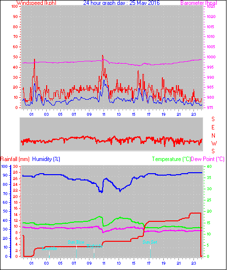 Maximum windspeed = 16.7 km/h on day 04 at time 23:44