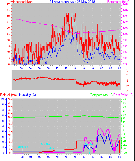 Maximum windspeed = 18.5 km/h on day 01 at time 16:28