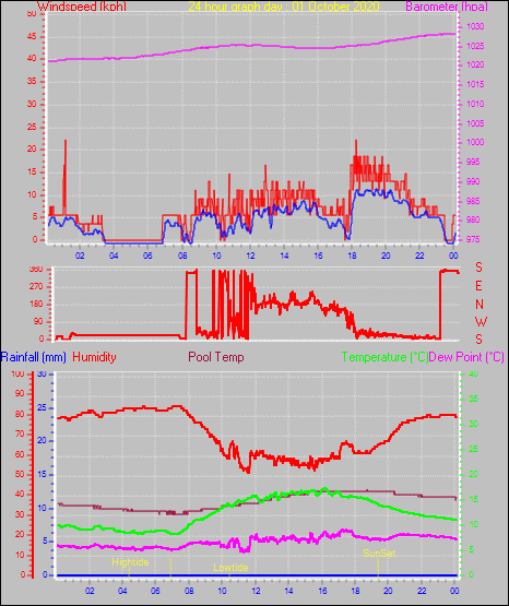Maximum pressure = 1023.1 hPa on day 30 at time 00:23