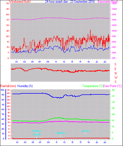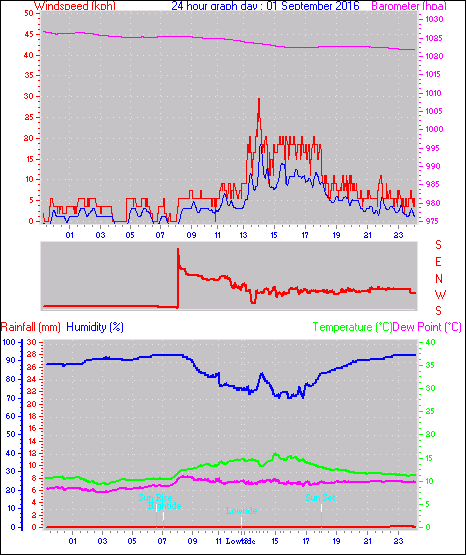 Maximum windspeed = 35.2 kmh from 00°( N ) on day 17 at time 15:44