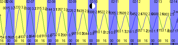 Local Tide predictions Auckland, New Zealand Units are meters, initial timezone is NZDT Thursday 02-05 Sunrise 0640, Sunset 2028 Moonset 0948, Moonrise 2210 Low Tide: 0423 0.4 High Tide: 1049 3.4 Low Tide: 1654 0.5 High Tide: 2315 3.2 Friday 02-06 Sunrise 0641, Sunset 2027 Moonset 1051, Moonrise 2234 Low Tide: 0505 0.4 High Tide: 1133 3.3 Low Tide: 1737 0.5 Saturday 02-07 Sunrise 0642, Sunset 2026 Moonset 1152, Moonrise 2258 High Tide: 0000 3.2 Low Tide: 0548 0.6 High Tide: 1215 3.2 Low Tide: 1819 0.6 Sunday 02-08 Sunrise 0643, Sunset 2025 Moonset 1253, Moonrise 2324 High Tide: 0044 3.1 Low Tide: 0632 0.7 High Tide: 1257 3.1 Low Tide: 1901 0.7 Monday 02-09 Sunrise 0644, Sunset 2024 Moonset 1353, Moonrise 2354 High Tide: 0126 2.9 Low Tide: 0719 0.9 High Tide: 1339 2.9 Low Tide: 1944 0.8 Tuesday 02-10 New Moon Sunrise 0645, Sunset 2023 Moonset 1454, Moonrise 0029 High Tide: 0208 2.8 Low Tide: 0810 1.0 High Tide: 1422 2.8 Low Tide: 2029 0.9 Wednesday 02-11 Sunrise 0647, Sunset 2022 Moonrise 0029, Moonset 1554 High Tide: 0255 2.7 Low Tide: 0903 1.1 High Tide: 1509 2.7 Low Tide: 2118 1.0 Thursday 02-12 Sunrise 0648, Sunset 2021 Moonrise 0110, Moonset 1650 High Tide: 0352 2.6 Low Tide: 0957 1.2 High Tide: 1602 2.6 Low Tide: 2210 1.1 Friday 02-13 Sunrise 0649, Sunset 2020 Moonrise 0159, Moonset 1742 High Tide: 0500 2.6 Low Tide: 1053 1.2 High Tide: 1703 2.5 Low Tide: 2307 1.1 Saturday 02-14 Sunrise 0650, Sunset 2019 Moonrise 0255, Moonset 1827 High Tide: 0602 2.6 Low Tide: 1149 1.2 High Tide: 1805 2.6 Sunday 02-15 Sunrise 0651, Sunset 2018 Moonrise 0356, Moonset 1906 Low Tide: 0007 1.0 High Tide: 0653 2.8 Low Tide: 1244 1.1 High Tide: 1900 2.7 Monday 02-16 Sunrise 0652, Sunset 2016 Moonrise 0501, Moonset 1940 Low Tide: 0103 0.9 High Tide: 0737 2.9 Low Tide: 1334 1.0 High Tide: 1949 2.8 Tuesday 02-17 Sunrise 0653, Sunset 2015 Moonrise 0607, Moonset 2009 Low Tide: 0152 0.8 High Tide: 0819 3.0 Low Tide: 1419 0.9 High Tide: 2034 2.9 Wednesday 02-18 First Quarter Moon Sunrise 0654, Sunset 2014 Moonrise 0714, Moonset 2036 Low Tide: 0236 0.7 High Tide: 0900 3.1 Low Tide: 1503 0.7 High Tide: 2118 3.0 Thursday 02-19 Sunrise 0655, Sunset 2013 Moonrise 0820, Moonset 2101 Low Tide: 0318 0.6 High Tide: 0942 3.2 Low Tide: 1545 0.6 High Tide: 2202 3.1 Friday 02-20 Sunrise 0656, Sunset 2012 Moonrise 0926, Moonset 2126 Low Tide: 0358 0.5 High Tide: 1025 3.3 Low Tide: 1627 0.5 High Tide: 2247 3.2 Saturday 02-21 Sunrise 0657, Sunset 2010 Moonrise 1034, Moonset 2153 Low Tide: 0440 0.5 High Tide: 1109 3.3 Low Tide: 1711 0.5 High Tide: 2332 3.2 Sunday 02-22 Sunrise 0658, Sunset 2009 Moonrise 1145, Moonset 2223 Low Tide: 0524 0.6 High Tide: 1155 3.3 Low Tide: 1756 0.5 Monday 02-23 Sunrise 0659, Sunset 2008 Moonrise 1257, Moonset 2259 High Tide: 0019 3.2 Low Tide: 0613 0.6 High Tide: 1243 3.2 Low Tide: 1845 0.5 Tuesday 02-24 Sunrise 0700, Sunset 2006 Moonrise 1411, Moonset 2343 High Tide: 0108 3.1 Low Tide: 0709 0.7 High Tide: 1334 3.1 Low Tide: 1938 0.6 Wednesday 02-25 Full Moon Sunrise 0701, Sunset 2005 Moonrise 1523, Moonset 0036 High Tide: 0201 3.0 Low Tide: 0811 0.8 High Tide: 1429 3.0 Low Tide: 2035 0.7